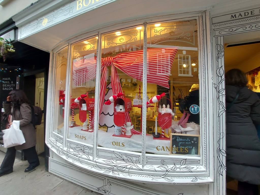 This beautiful aromatherapy shop on Stonegate made me ‘aww’ out loud because of how adorable this window display was. It’s very nicely colour coordinated and there is great attention to detail. I particularly enjoyed those little elf legs wriggling about in the second picture. You can see them move in an Instagram post below.