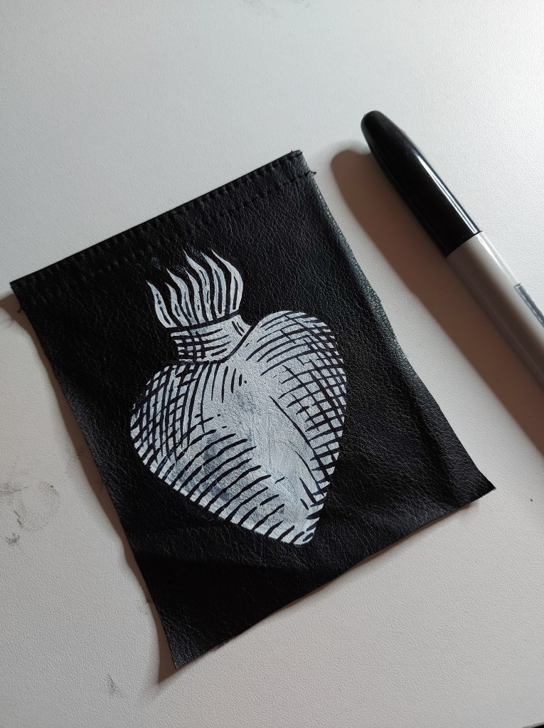 Material doesn’t matter too much when it comes to choosing which fabric to work on, but speaking from experience – thinner cotton or fake leather are the easiest to paint on. Thicker types of fabric will require multiple coats of paint and a bit of patience. Avoid anything too stretchy! Painting on stretchy fabric could result in paint not sticking properly and eventually flaking off. The stiffer, the better.