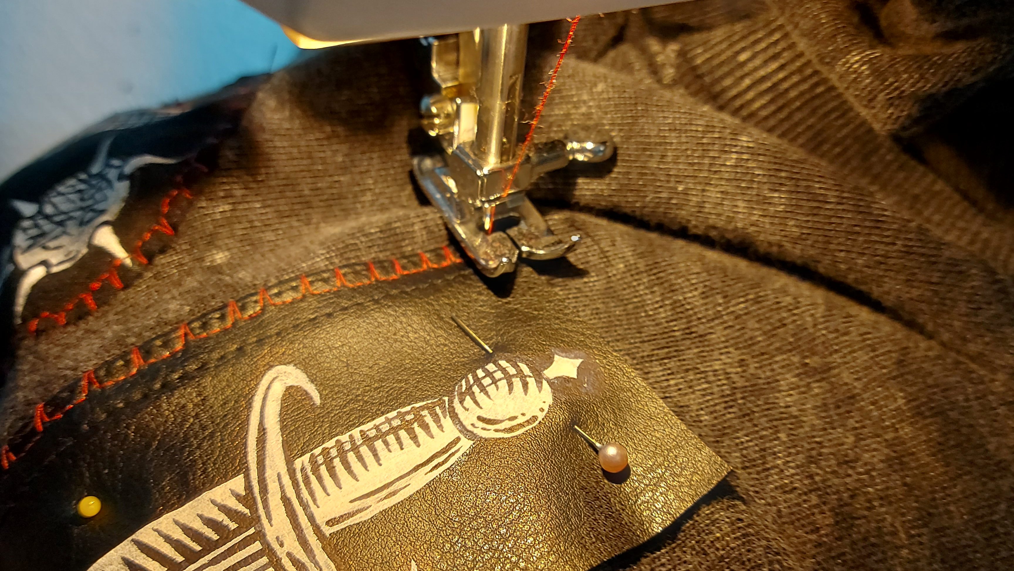 Once you have played around with different placements and figured out where you want your patch to be, secure it with sewing pins so it doesn’t move around as you sew.