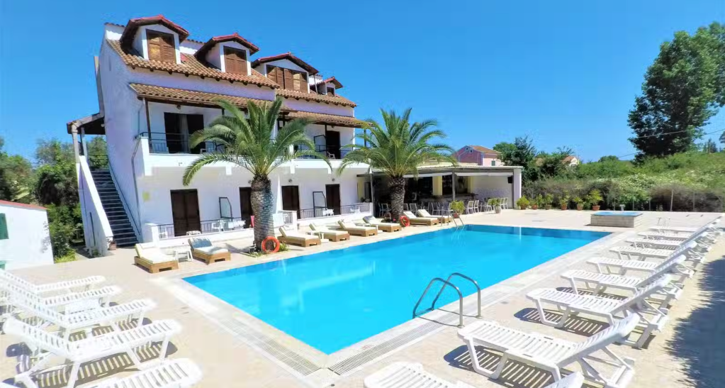 Letos Hotel is located close to the Alykanas beach and just a short journey into the Zakynthos town. The hotel has many perks, including a large outdoor swimming pool, outside pool bar, electronic games and even kitchenettes for self catering. For food and drink, the buffet is mostly Greek and international dishes for breakfast and evening meals. The closest beach is 200m away and 35m away from Zakinthos Airport.